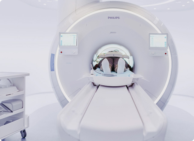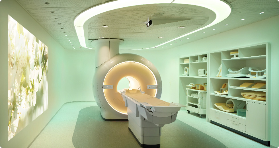 Leiden Sie an Klaustrophobie oder haben Probleme in engen Räumen? Kein Problem: Unsere MR-Geräte haben eine weite Gantry-Öffnung. Sprechen Sie uns an, falls Sie dennoch besorgt sind.